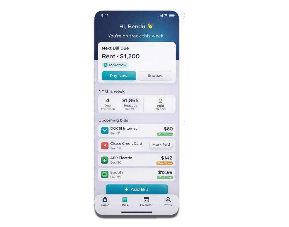 Track bills, get smart reminders, and pay in one tap — all from one simple app